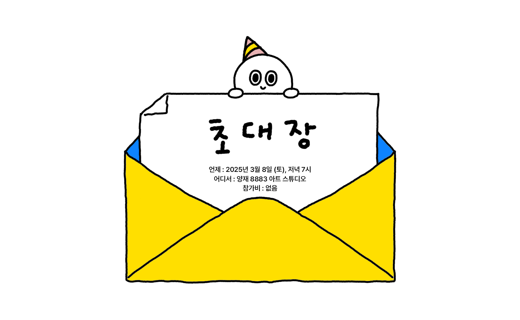3월 8일, 8883 아트스튜디오 / BBBE 카페에서 진행 예정인잉사이드 토크에 초대합니다. 감정카드를 사용하시는 분들은 어떤 분들일까?어떻게 사용하고 있을까?또 어떤걸 필요로 하고 있을까?에서 시작되어 잉사이드 토크를 하게 되었습니다 :) 맛있는 디저트와 음료를 즐기며 스튜디오 잉, 감정카드, 제작 중인 감각카드에 대한다양한 이야기를 들려드리고 선물도 나눌 예정이니 편하게 문 두드려 주세요. 언제 : 2025년 3월 8일 (토), 저녁 7시~9시어디서 : 양재 8883 아트 스튜디오참가비 : 없음 1부 : 스튜디오 잉의 이야기 (45분)스튜디오 잉 소개와 감정카드를 만들게 된 과정컬러와 감정의 묘한 연결고리 쉬는시간 : 럭키드로우 (15분)작가와 기획자가 준비한 포근한 선물 나눔! 2부 : 잉사..